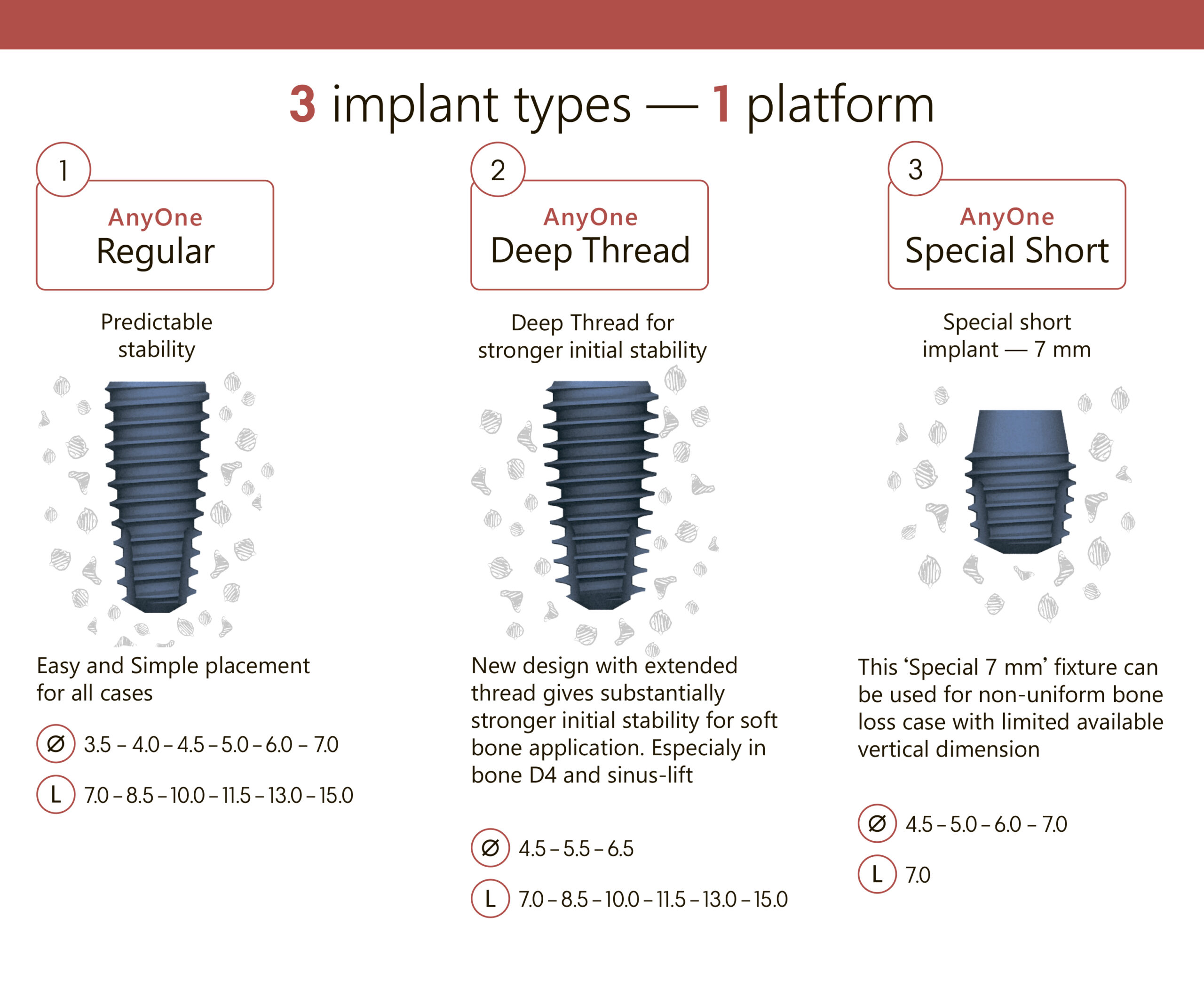 The implant is shorter by 0.5 mm than the mark on the drill, thanks to that the implant will be installed 0.5 mm subcrestal