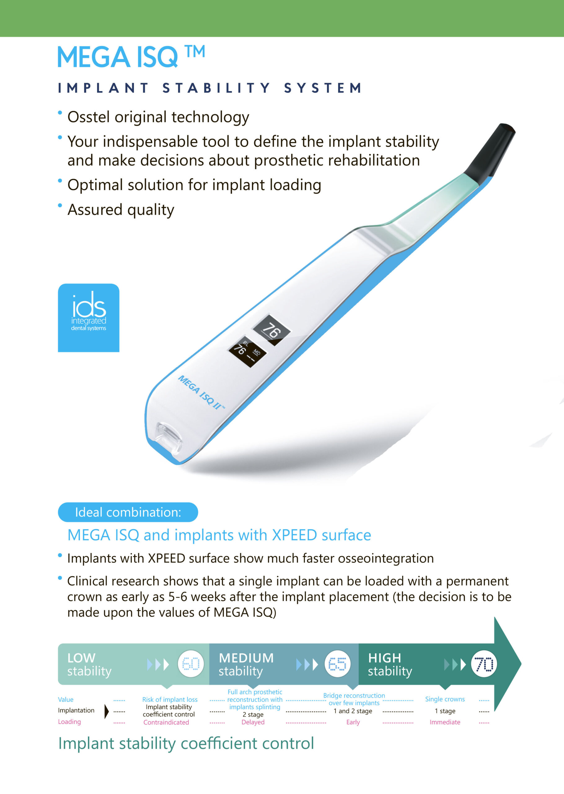 The MEGA ISQ II system optimizes the surgeon-prostodontic connection and translates a set of subjective sensations into digital values