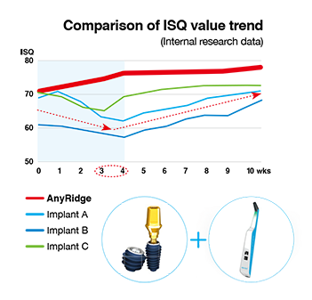 AnyRidge® fixtures do not depend on the cortical bone for initial stability. Decreased stress on the cortical bone helps to prevent stress on the cortical bone helps to prevent a bone resorption following fixture placement