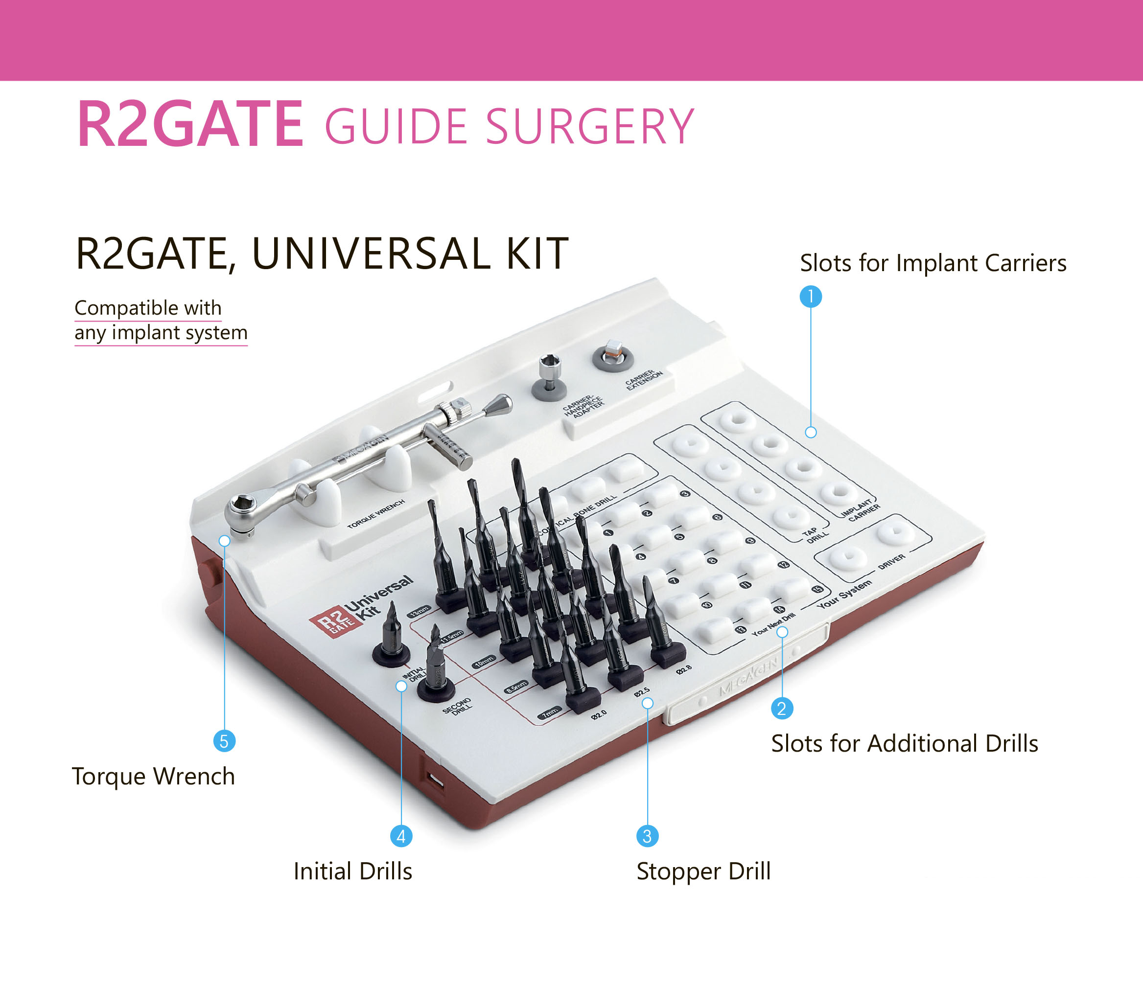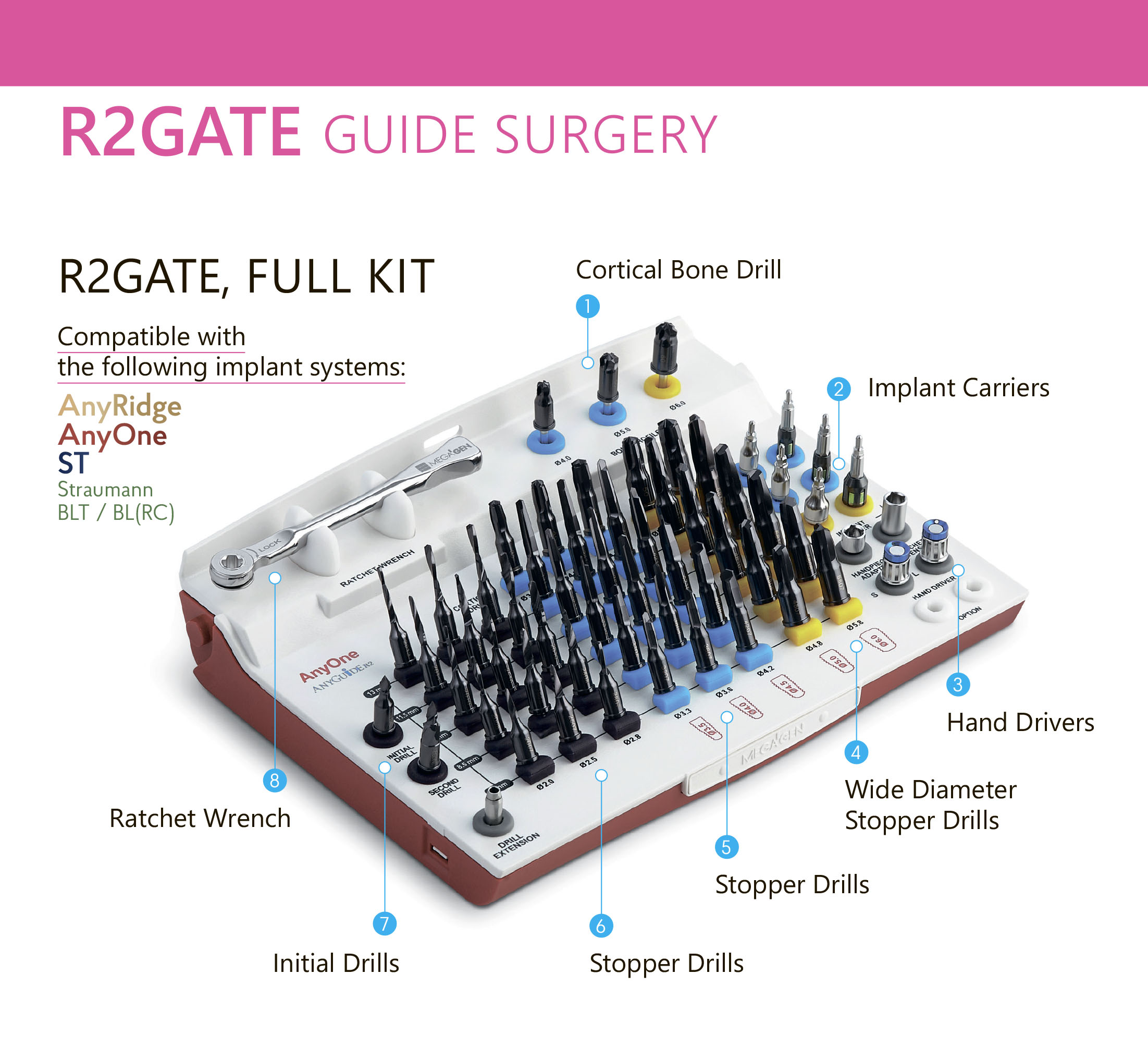The R2Gate system is a complex of software and surgical kits created by the MegaGen team of doctors for convenient planning, surgical templates, and placement of implants with the smallest deviation from the planned position